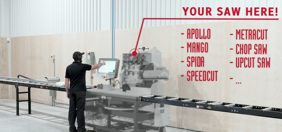 Fits on your existing saw frame and conveyor